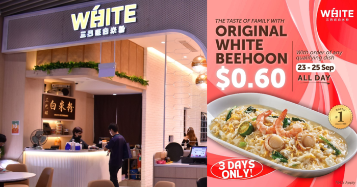 Good food always tastes better when it’s shared — and White Restaurant is bringing back a deal that the whole family will love! From 23 to 25 September, enjoy their legendary Original White Beehoon at just $0.60 (U.P. $8.50) when you order any one dish from their specially curated menu.