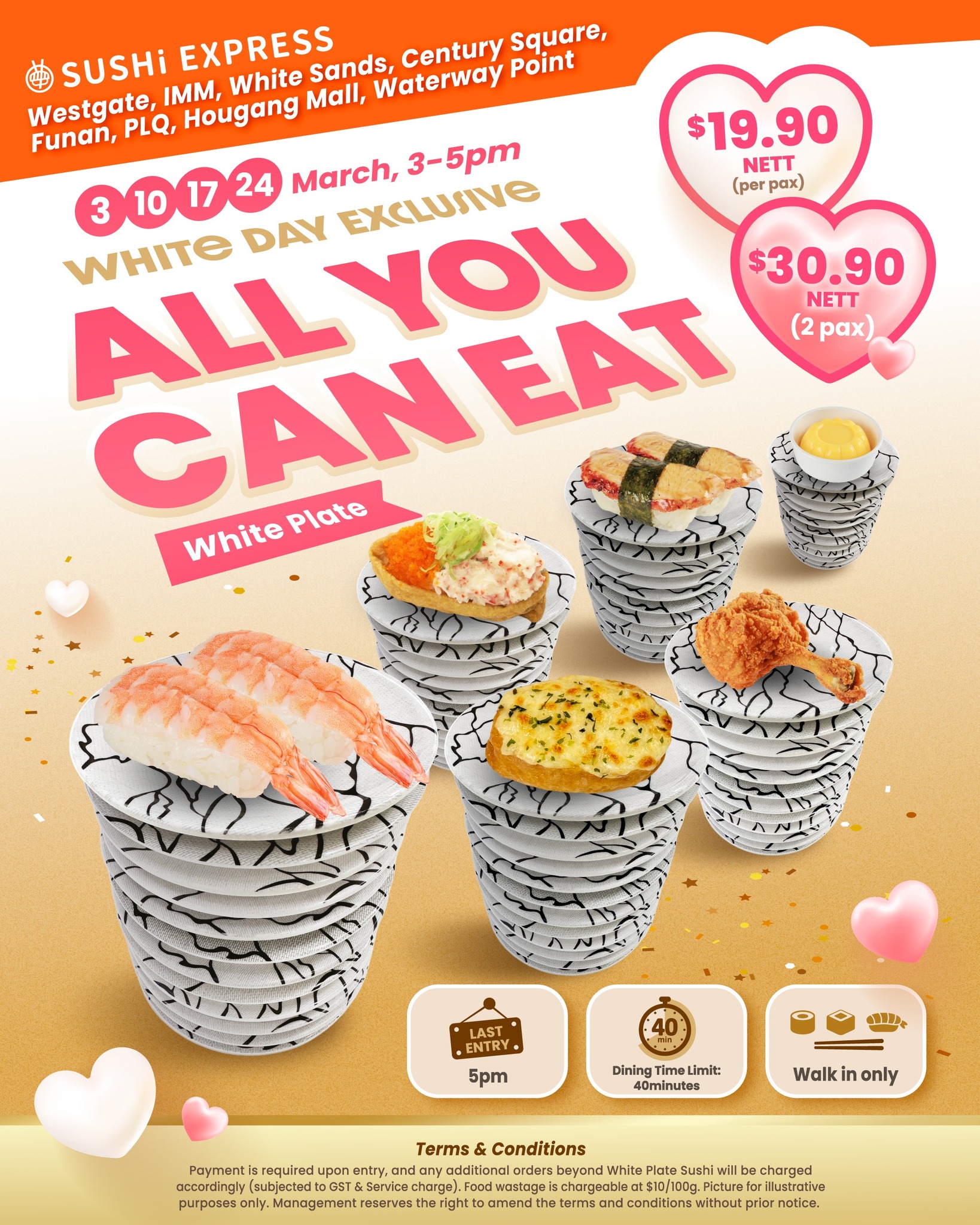 Head down to participating Sushi Express outlets and go all in on unlimited White Plate selections.