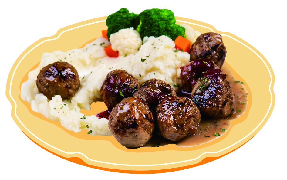 Andes by Astons Beef Meat Balls with Mushroom Sauce (U.P. $6.50) features homestyle oven-baked beef meatballs with cranberry sauce and creamy mashed potato topped with mushroom sauce. Kids and adults alike will love this crowd-pleaser of a dish!