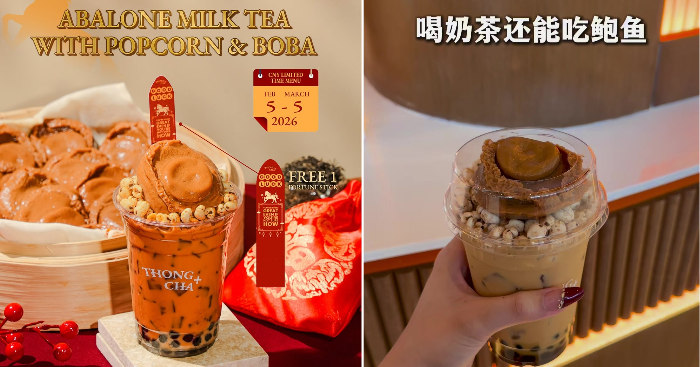 Over at Thong Cha+ in Malaysia, they’ve launched a drink that looks like it belongs at a CNY reunion dinner. Sitting inside your milk tea? A glossy “abalone”.
