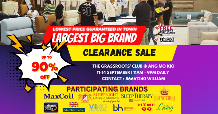 Ready to give your home a whole new look? From 11 to 14 September, The Grassroots’ Club in Ang Mo Kio is turning into the ultimate shopping ground for anyone looking to score the lowest prices in town. We’re talking up to 90% OFF across the biggest mattress and furniture brands — no tricks, no gimmicks, just pure savings.