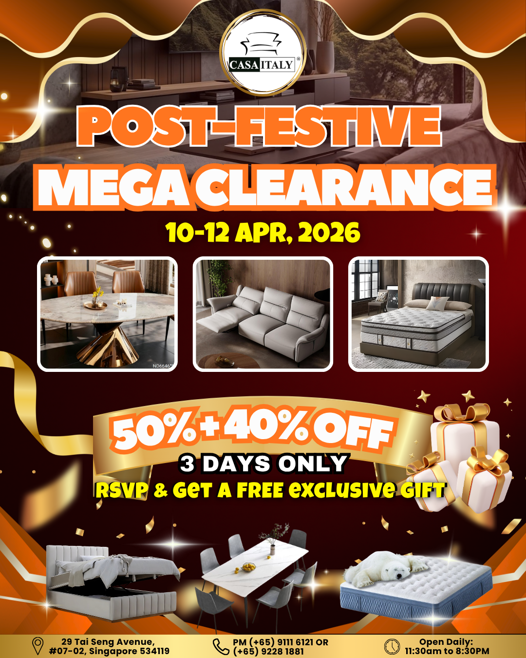 Don’t miss out on their Post-festive Mega Clearance furniture up to 50% + 40 % off!