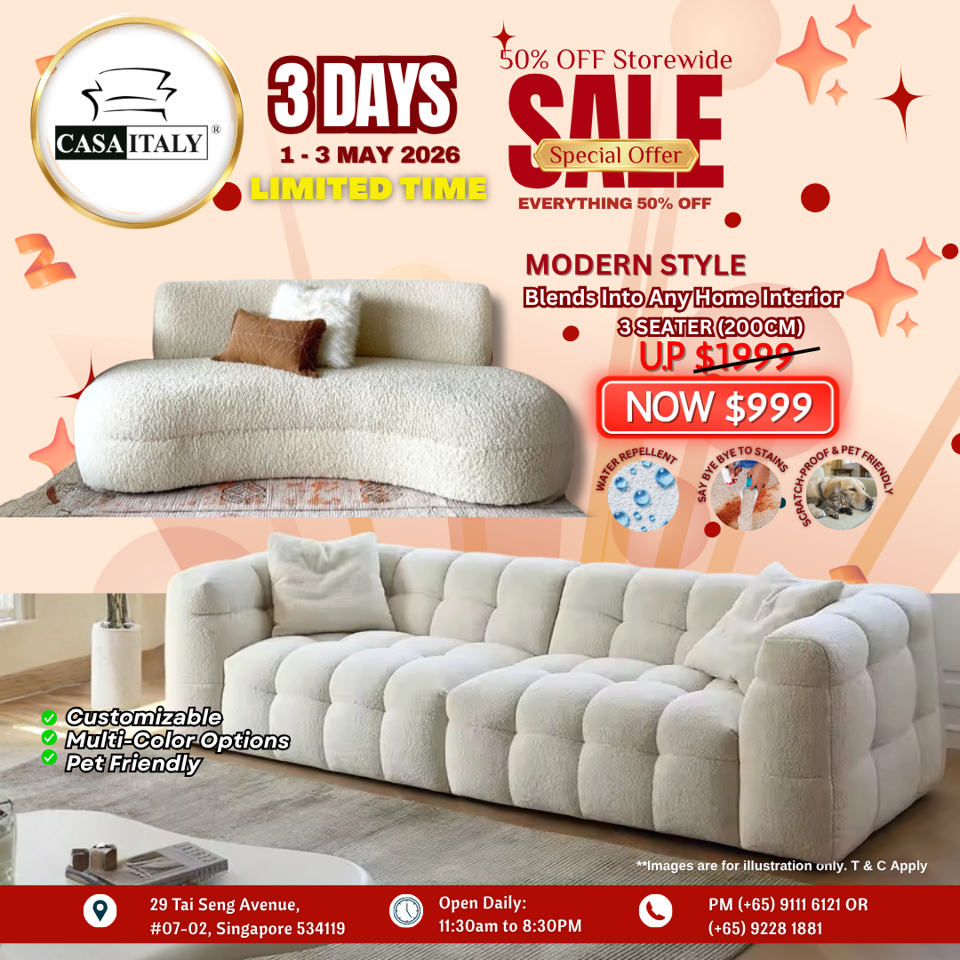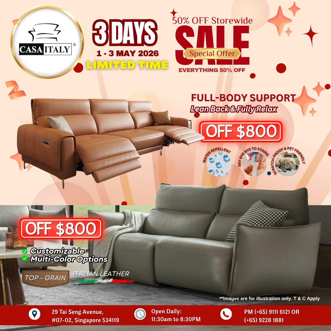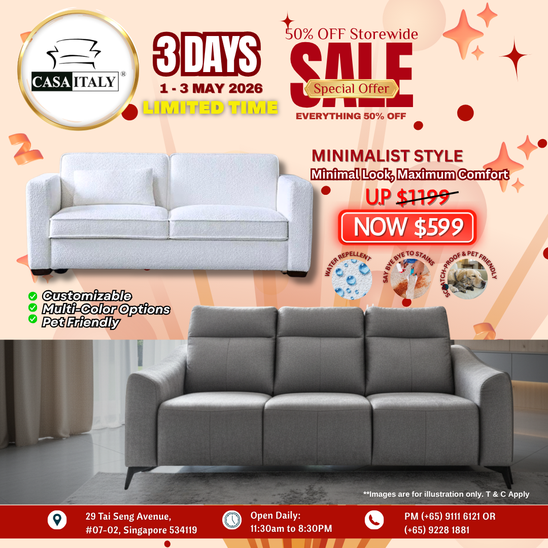 For a limited time only, enjoy 50% OFF storewide on sofas, dining tables, beds, mattresses, wardrobes and more. No need to pick or choose, everything is half price.Whether you’re upgrading your living room or refreshing your bedroom, this is your chance to bring home quality furniture at unbeatable value.