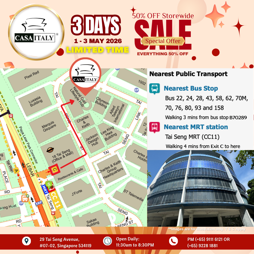 EVERYTHING MUST GO: Casa Italy offering EVERYTHING AT 50% OFF Storewide for 3 Days Only