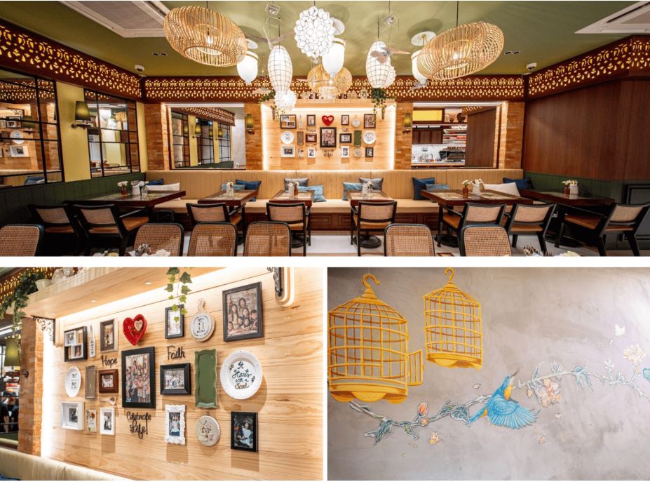 Expect stained-glass pendant lights, warm wooden accents, and a special mural collaboration between Filipino artist Amanda Lapus Santos and Singaporean artist Eunice Hannah Lim, symbolising the meeting of cultures.