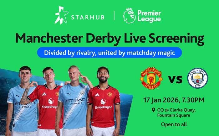 On 17 January 2026, StarHub is turning Clarke Quay Fountain Square into a buzzing matchday hub for the Manchester Derby, bringing Manchester United and Manchester City supporters together for a free, open-air live screening right in the heart of the city. It’s a night where colours may clash, but the love for the game takes centre stage.