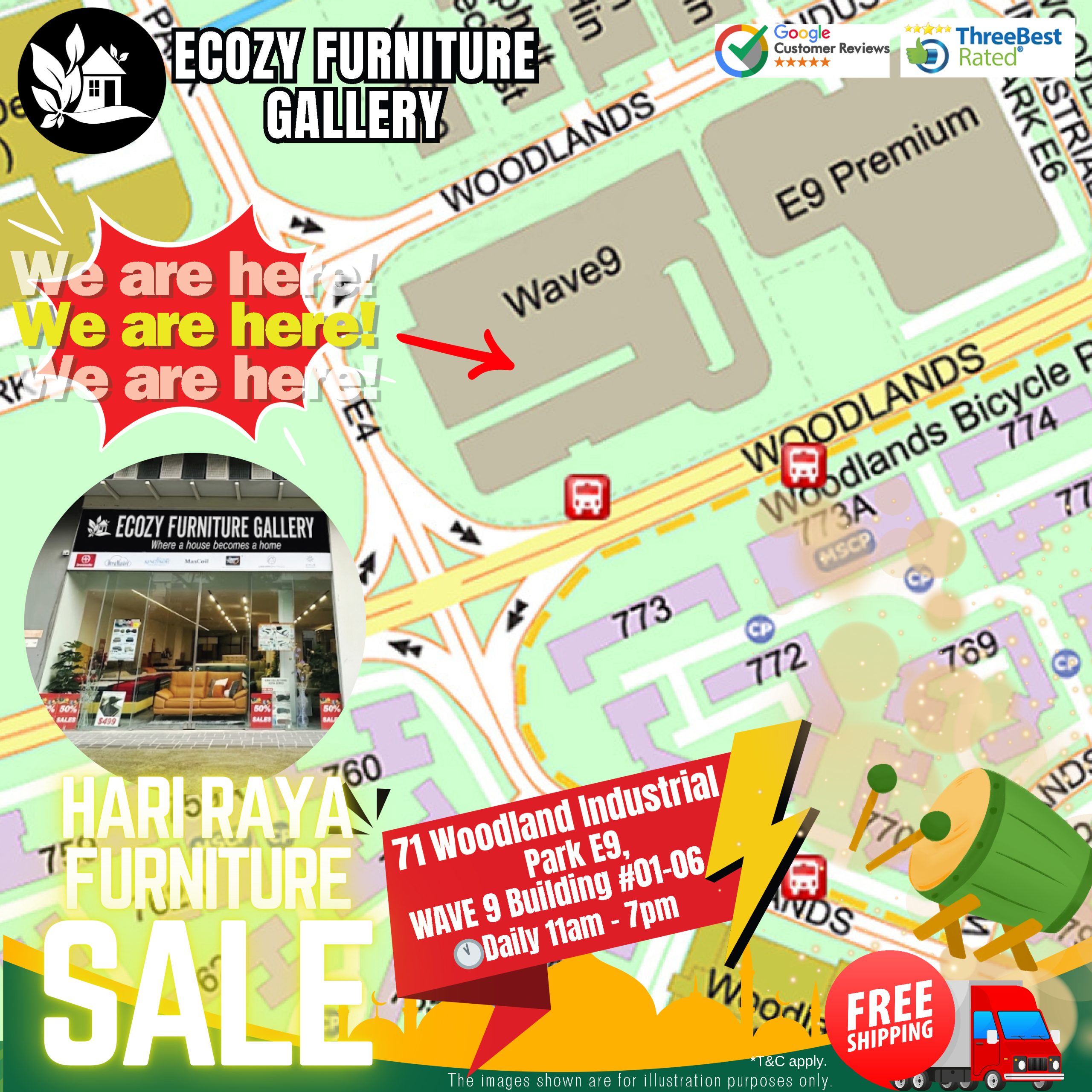 Located at 71 Woodlands Industrial Park E9, Wave 9 Building #01-06, the Ecozy showroom will be packed with living room, bedroom, and dining furniture at clearance-level prices.
