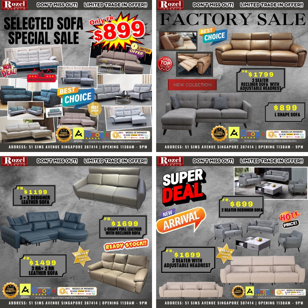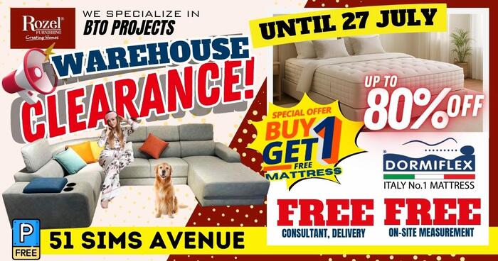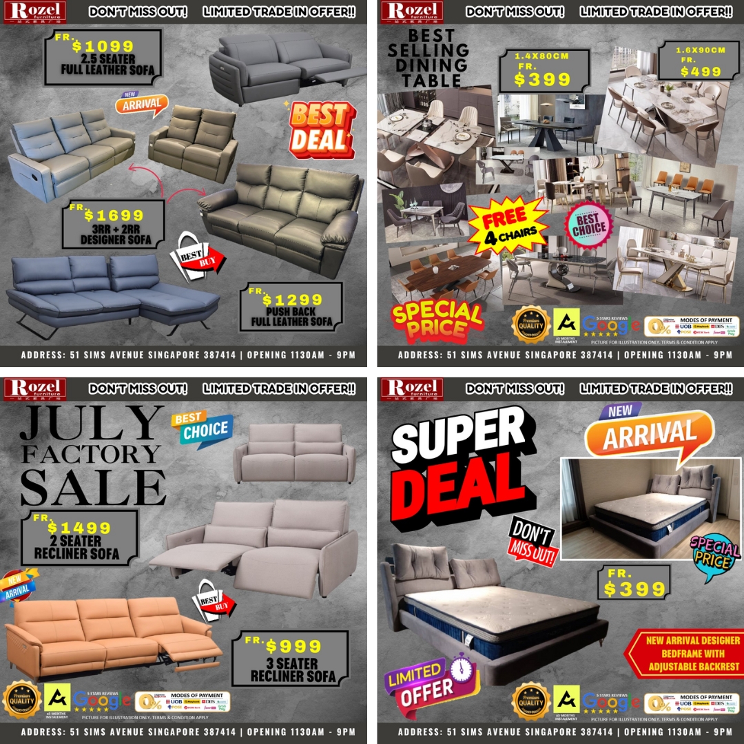 Rozel Furnishing invites you to unlock unbeatable savings at our exclusive Furniture Warehouse Clearance Sale — happening now at 51 Sims Avenue! From now until 27th July, between 11:30 AM and 9:00 PM, explore a stunning range of luxury furniture at up to 80% OFF, all offered at factory-direct prices.
