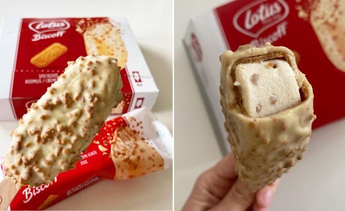 You can now find the Lotus Biscoff White Chocolate Ice Cream Stick (3 Ă 90 ml) on RedMart at around $8.50 per box.