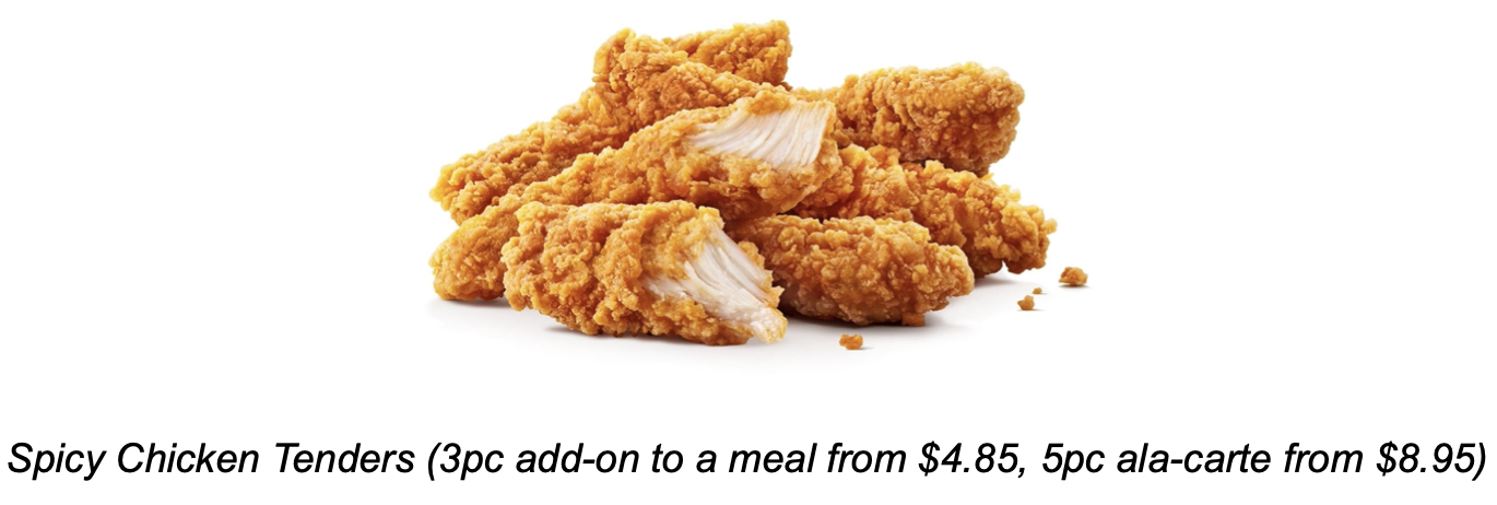 - From 12 February (11am): Spicy Chicken Tenders available islandwide