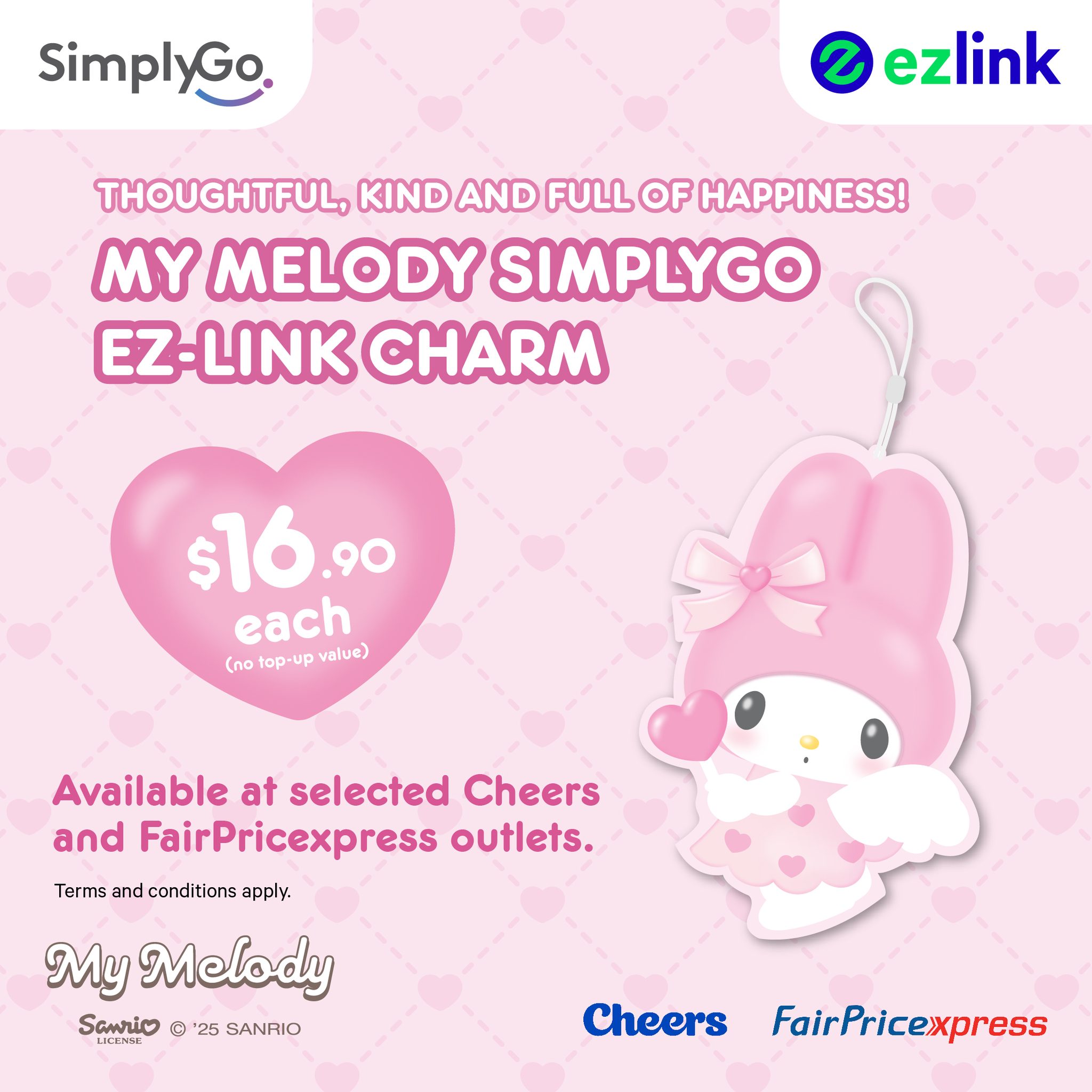 Priced at just $16.90 each (no stored value), the My Melody SimplyGo EZ-Link charm is now available at selected Cheers and FairPrice Xpress outlets — but only while stocks last. We all know how fast these Sanrio collectibles fly off the shelves, so don’t wait!