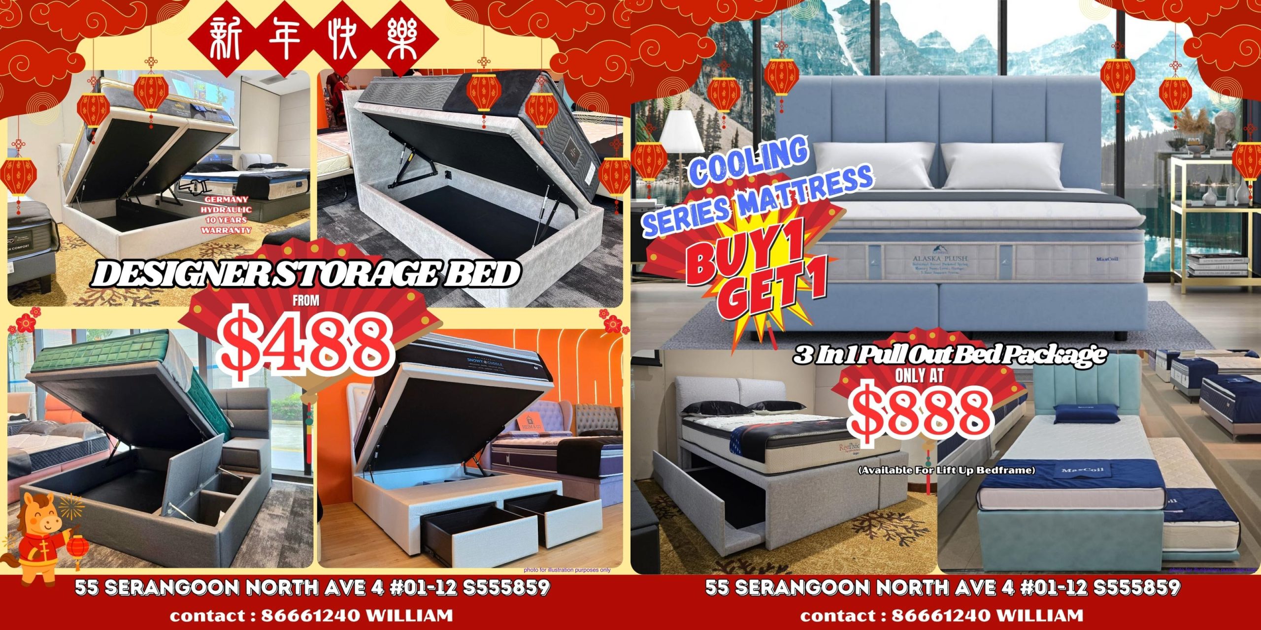 Maxcoil isn’t stopping at mattresses alone. Storage bedframes start from $488, making it practical for homes that need extra space without adding clutter. There’s also a 3-in-1 pull-out bed package at $888, a popular option for kids’ rooms and guest rooms during the festive season. For those looking at a higher-end upgrade, Maxcoil’s AI adjustable beds are also available at special CNY pricing — the kind that’s best experienced in person.
