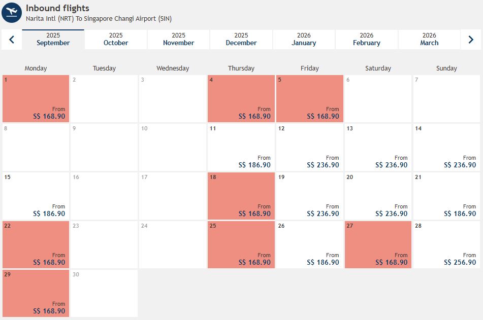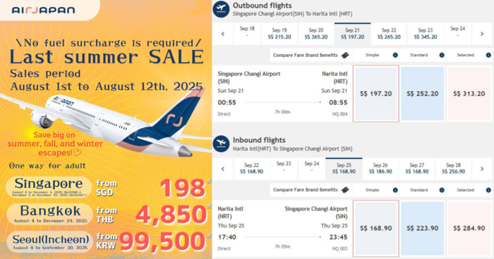 Spotted on AirJapan’s site – flights from just S$197.20, and inbound fares dipping to an incredible S$168.90!