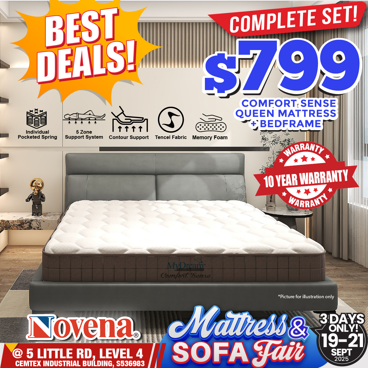 This September, Novena is turning up the heat with a 3-day Mattress & Sofa Fair that every savvy Singaporean homeowner needs to mark down. From 19 to 21 September, head down to 5 Little Road, Level 4 and experience deals that will make you wonder why you ever paid full price before.