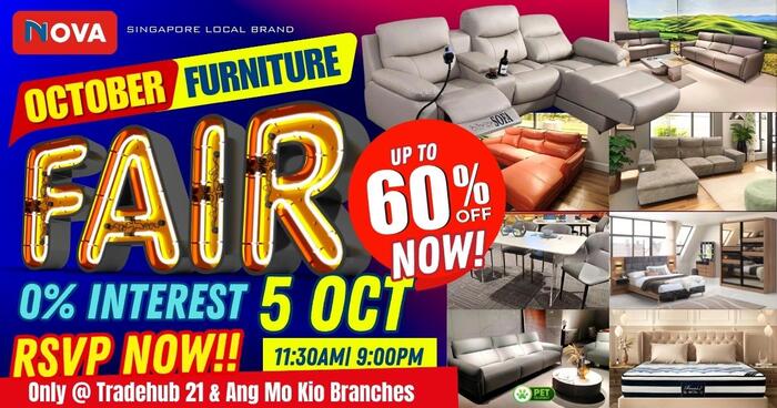 Happening Now: October Furniture Fair until 5th October at Tradehub 21 & Ang Mo Kio – Up to 60% OFF + 0% Interest!