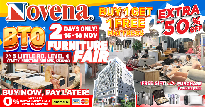 Buy 1 Get 1 Free Mattress, Up to 50% Off + Free Gifts Worth $600 at Novena’s BIGGEST BTO Furniture Fair from 15 – 16 Nov 25