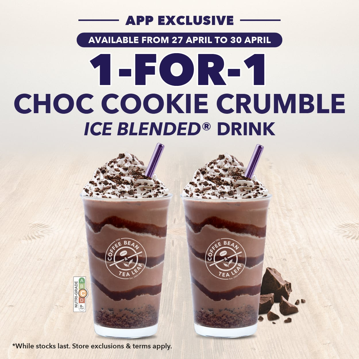 For a limited time, The Coffee Bean & Tea Leaf is rolling out a sweet app-exclusive deal that doubles the indulgence — without doubling the price. From 27 to 30 April, enjoy a 1-for-1 Choc Cookie Crumble Ice Blended® drink, available only via the Coffee Bean’s mobile app.