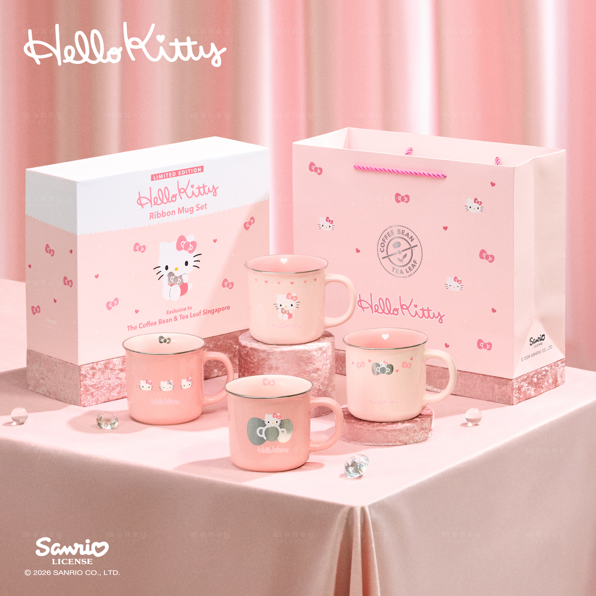 The Hello Kitty Ribbon Mug Set will be available from 1 May 2026, priced at $29.90 per set, at all The Coffee Bean & Tea Leaf outlets islandwide (excluding Marina Bay Sands).