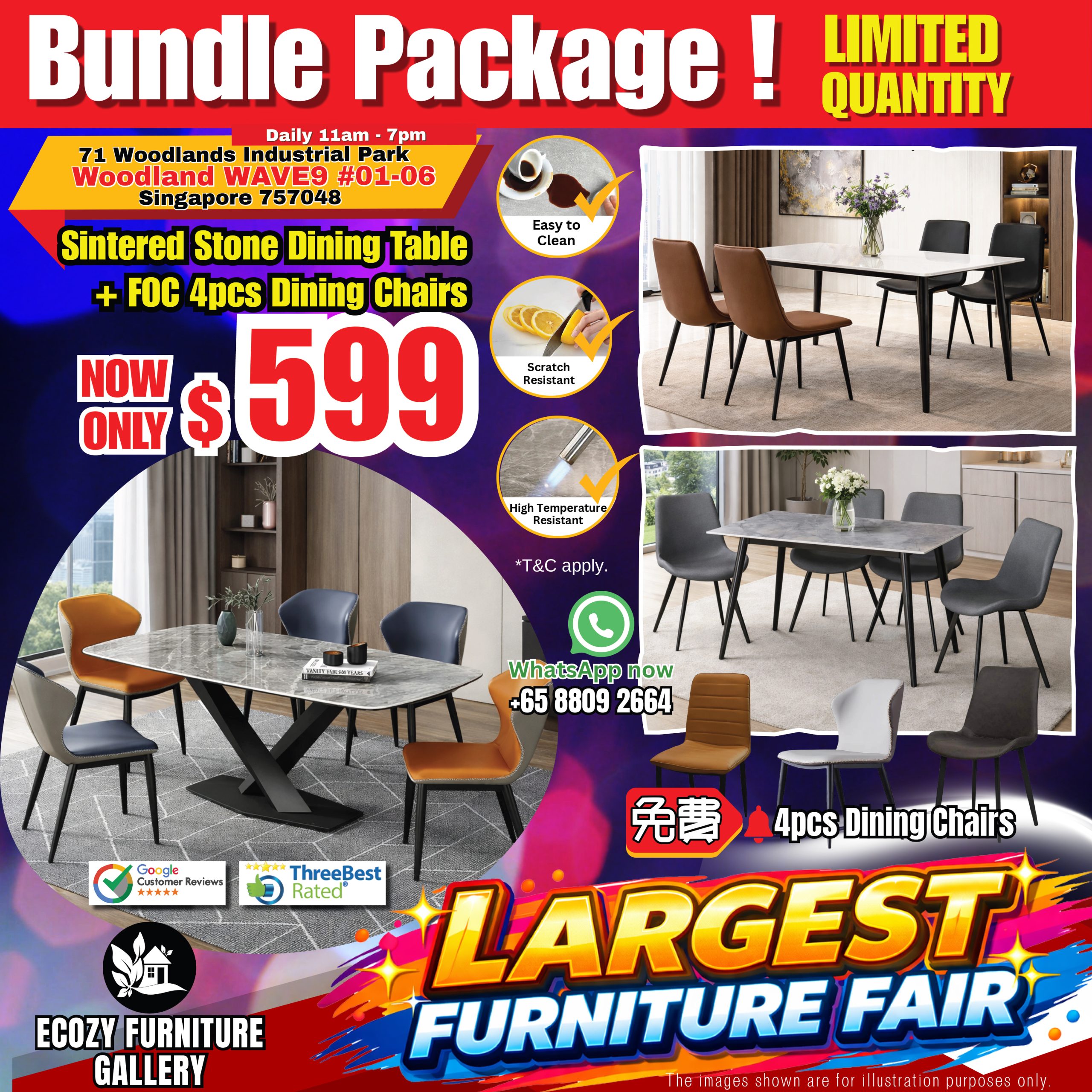 Sintered Stone Dining Tables start from $599, offering durability and a modern finish, while Extendable Dining Tables from $699 come with four complimentary dining chairs, allowing homeowners to complete their dining setup in a single purchase.