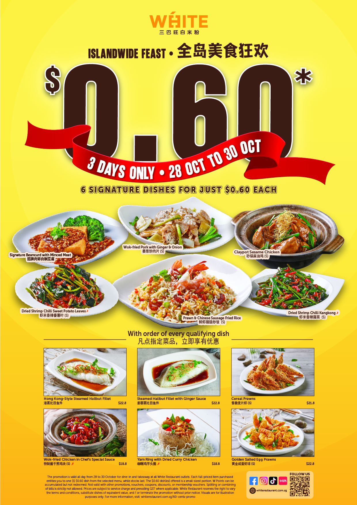 For full details, visit whiterestaurant.com.sg/0.60cents-promo