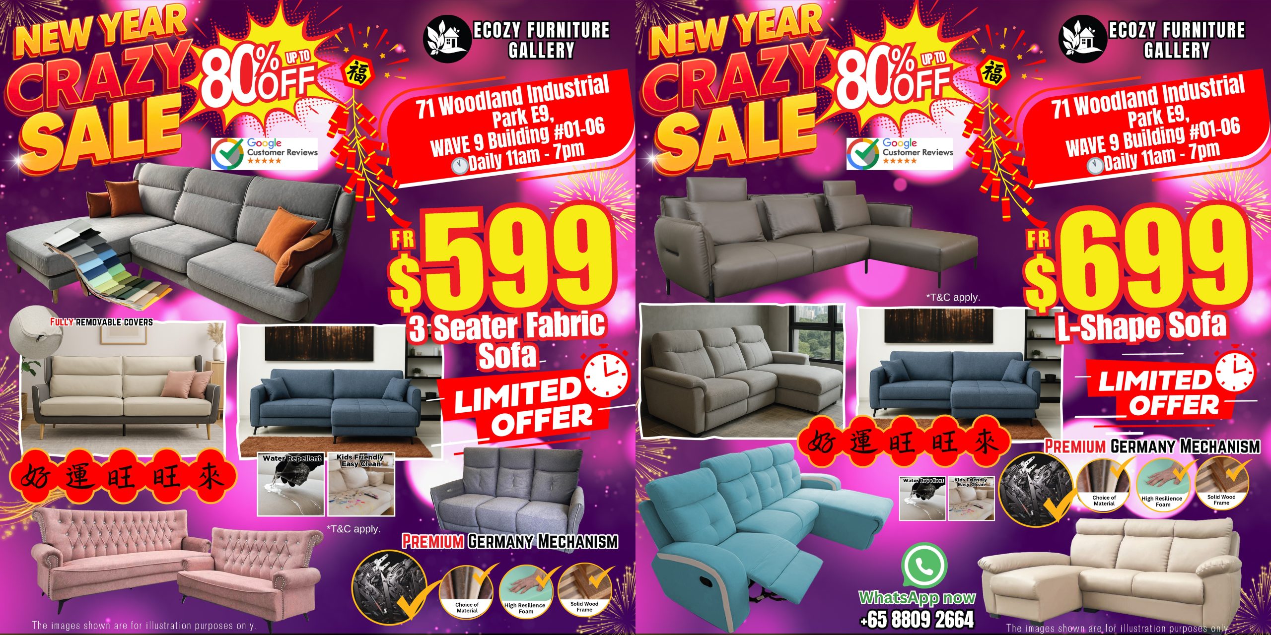 If upgrading your home has been sitting on your New Year to-do list, this is your sign. Ecozy Furniture Gallery is ringing in 2026 with a New Year Crazy Sale, slashing prices by up to 80% OFF from now till CNY.